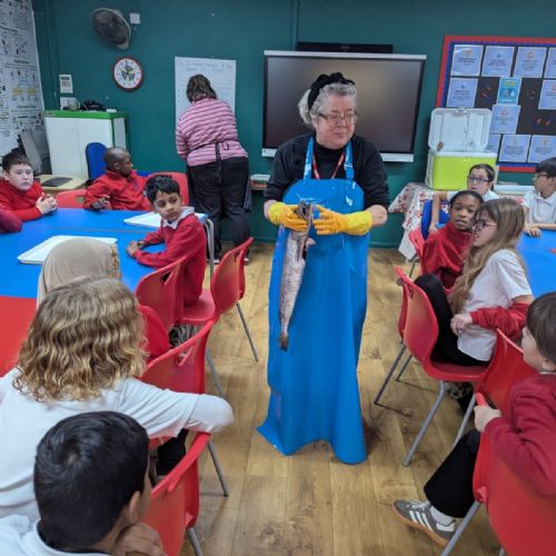 Year 5 were very fortunate to have Billingsgate Market representatives come to our school to do a workshop on fish from the Billingsgate market, with a historical overview and fish education!