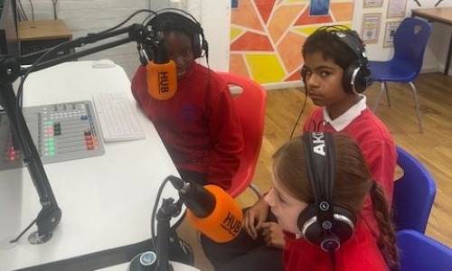 Since being back at school, we have had special training with Russel where we learnt how to set everything up and produce podcasts and radio segments like weather, sport and interviews.  We even sometimes interview celebrities such as this week when Frankie Bridge, a TV and pop star, visited. We have breakfast shows every morning, breaktime, lunchtime and the end of the day.  Lots of different children have been trained from years 4, 5 and 6 as well as some pupils from The Lighthouse. We enjoy doing these shows as we can let everyone know the news and give out important messages and, of course, play music.