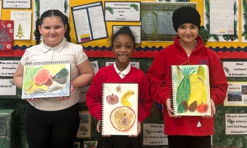 Ela, Keyanna and Eshaal from year 3 show their Colombian inspired artwork